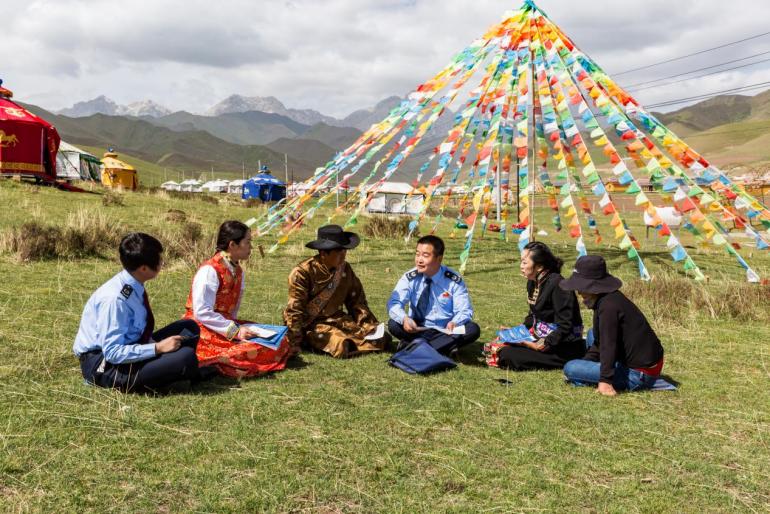 天祝县税务局干部向藏式民宿经营者宣传税收优惠政策
