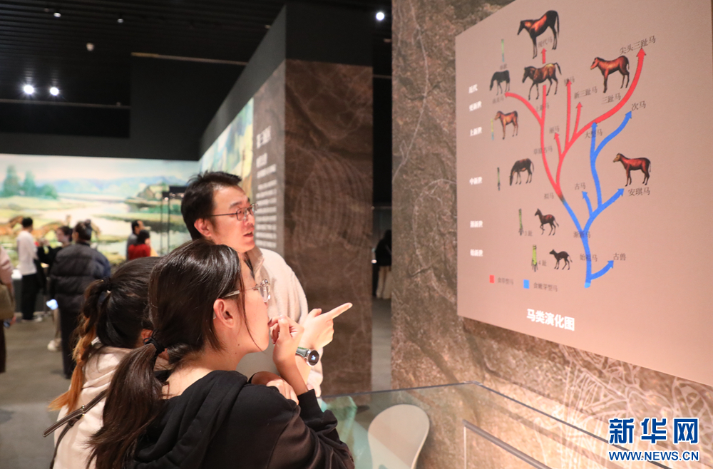 游客探讨马类演化图。新华网(刘欣瑜 摄)