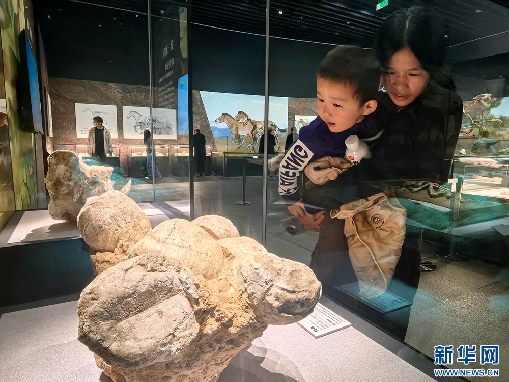 游客参观鸵鸟蛋化石。新华网(刘欣瑜 摄)