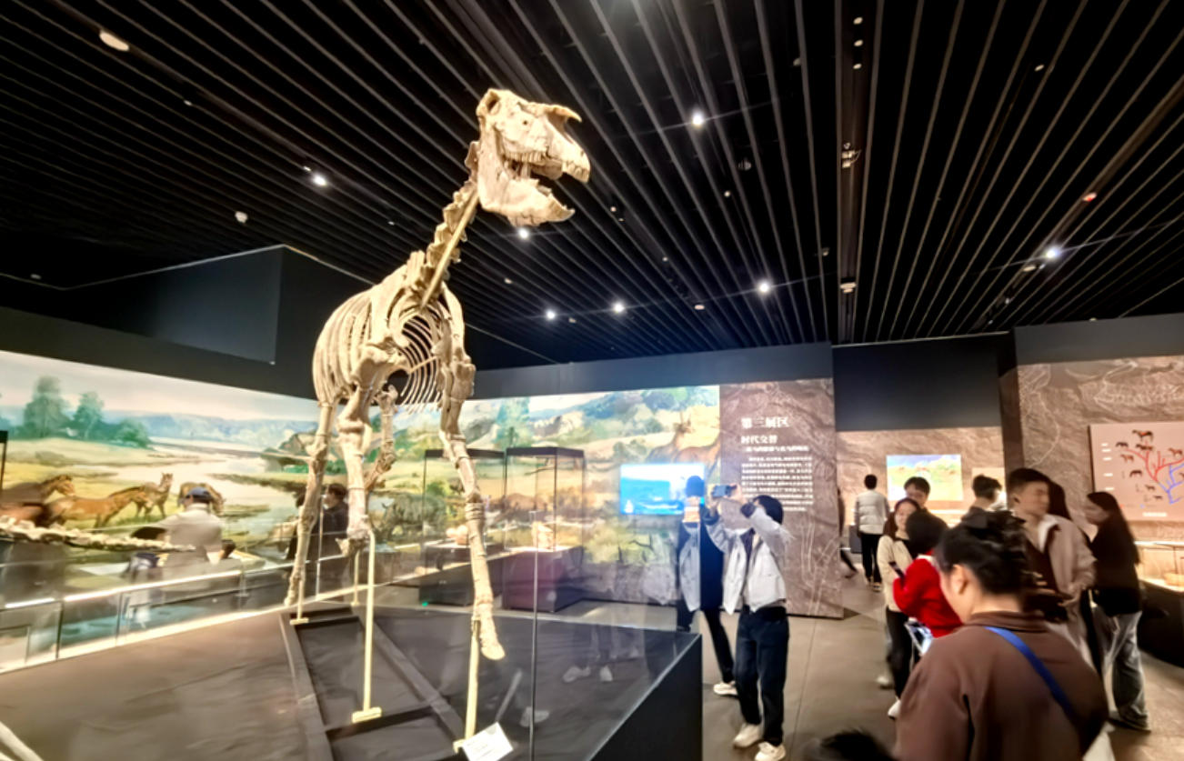 游客参观埃氏马骨架化石。新华网(王生元 摄)