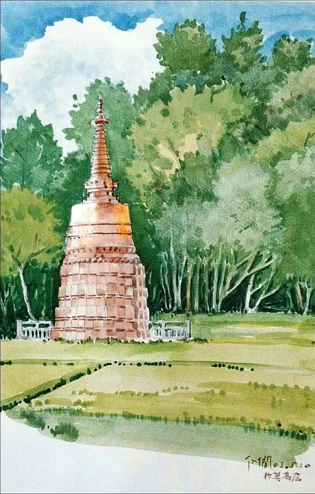 孙儒僴绘制的莫高窟小牌坊。受访者供图
